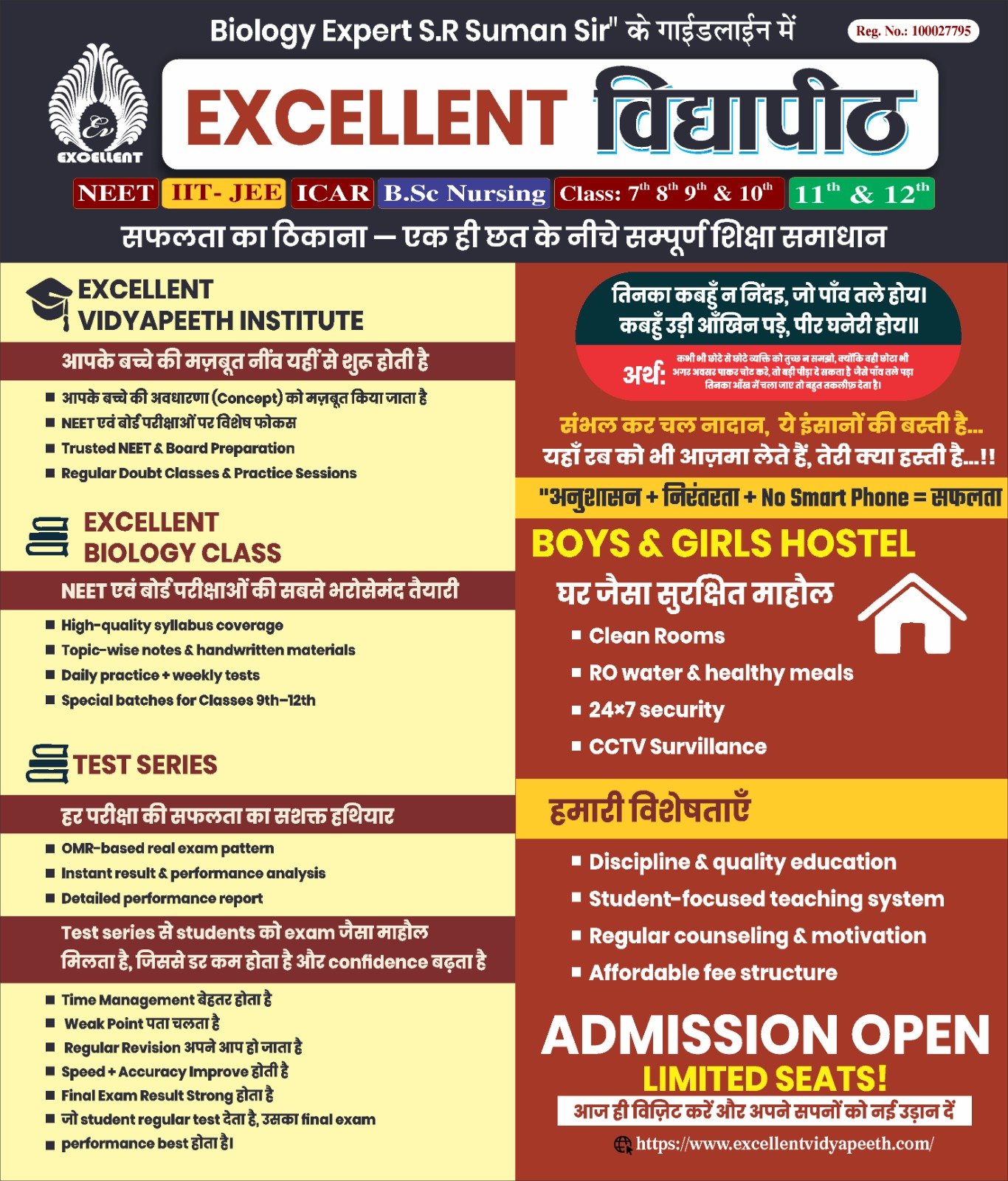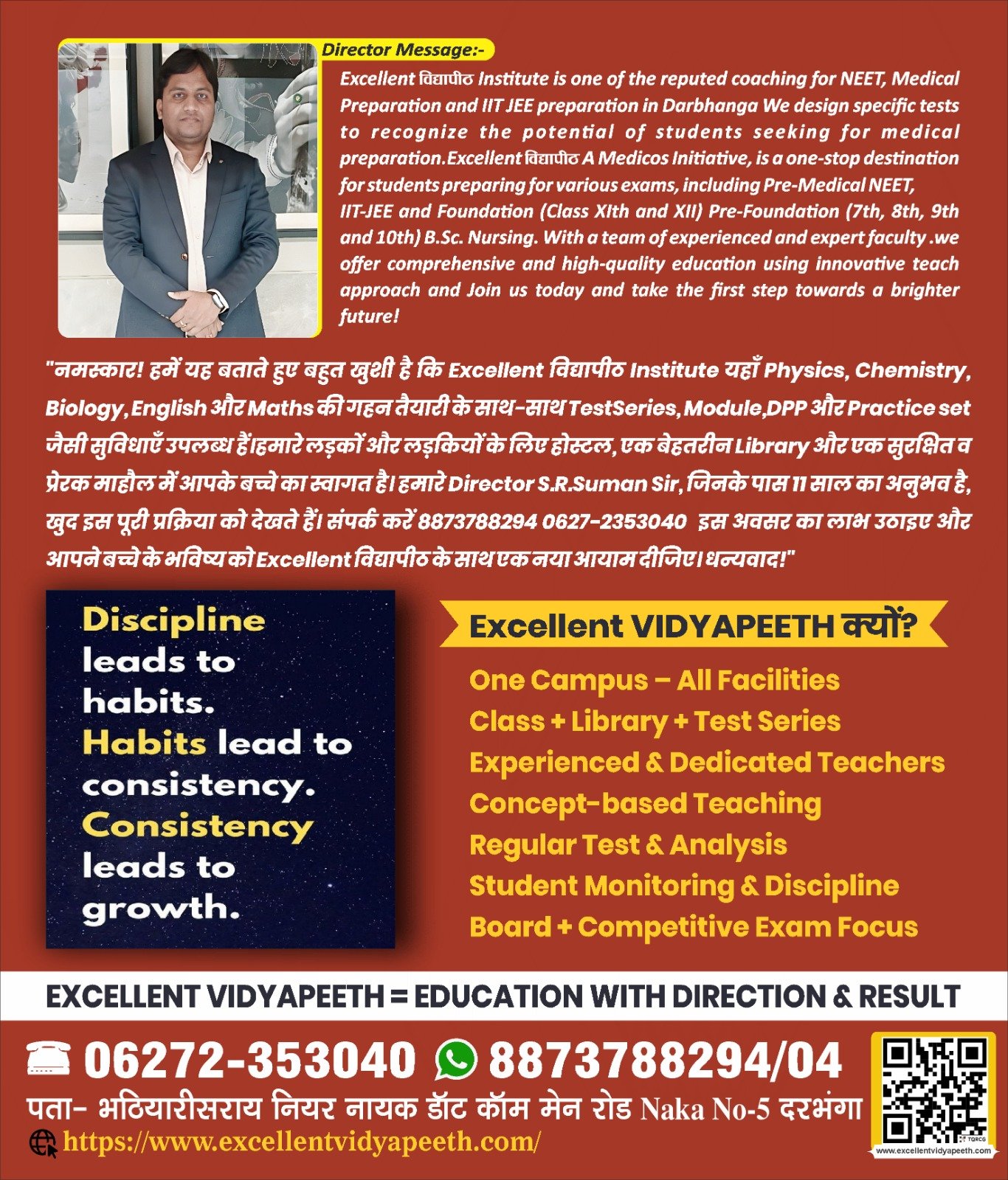 Excellent विद्यापीठ लेकर आयी है :- For NEET / ICAR / B.Sc Nursing / IIT-JEE / 11th / 12th / 8th / 9th &10th Classes in Darbhanga. Expert Faculty Smart Classroom Test Series Study Package Doubt Clearing class Personal Attention Excellent supports staffs.